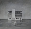 2021 - 2025The Travelers: selections from an ongoing series in a time of personal, collective and planetary transition. The process: Found figures and structures, originally manufactured for model railroad scenes, are used to create a diorama. I then take photos of the scene with varied lighting and perspectives, eventually selecting one to use as a reference for my painting. |